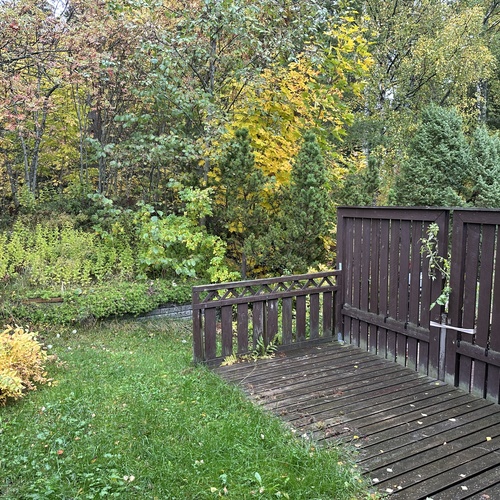 Osittain laudoitettu, muuten nurmikkoa. Piha-alueella joitakin istutuksia/pensaita.