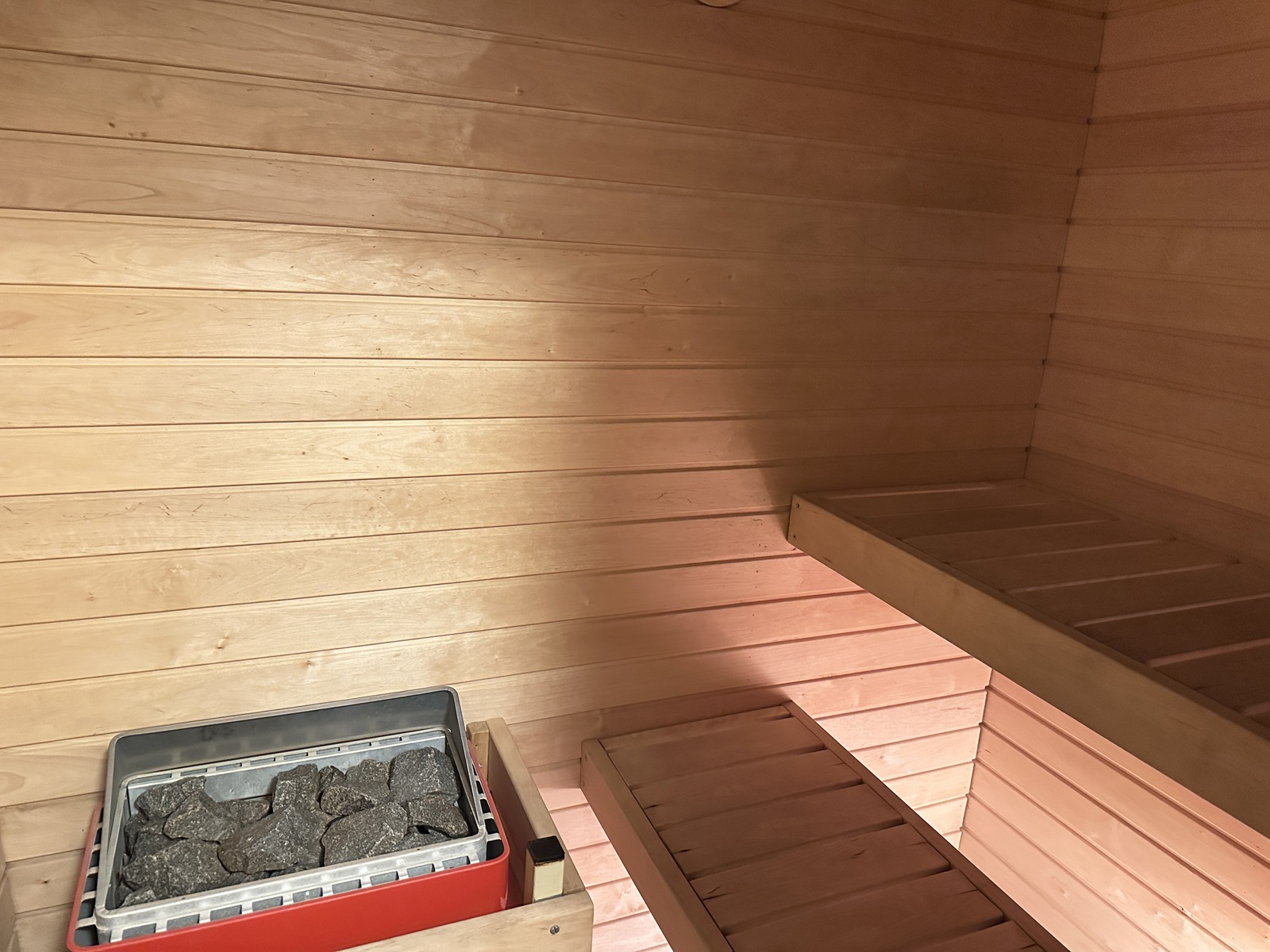 Asunnon pohjaratkaisu käsittää olohuoneen, keittiön ja pesuhuoneen lisäksi oman saunan.