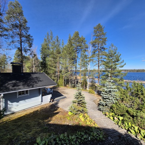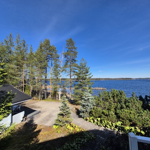 Vuonna 2000 valmistunut hirsinen loma-asunto loistavalla paikalla reilun 10 kilometrin päässä Savonlinnan keskustasta