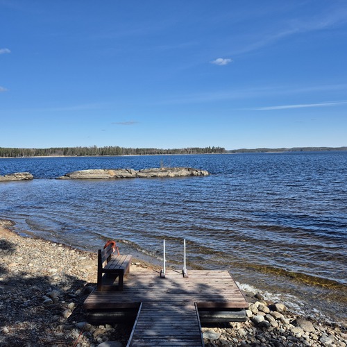 Matalahko kovapohjainen hiekkaranta. Omaa rantaviivaa noin 140 metriä