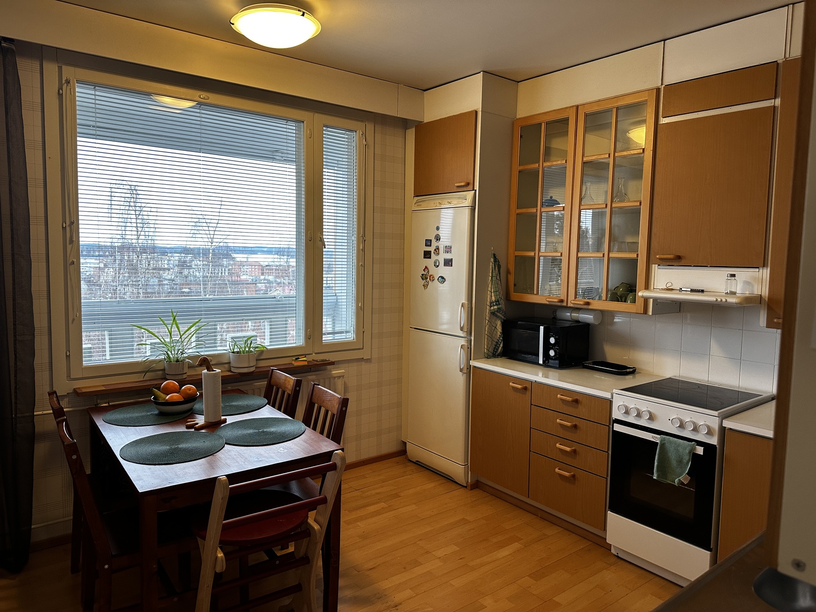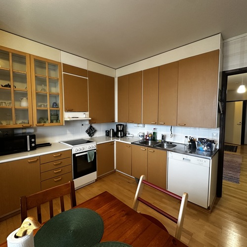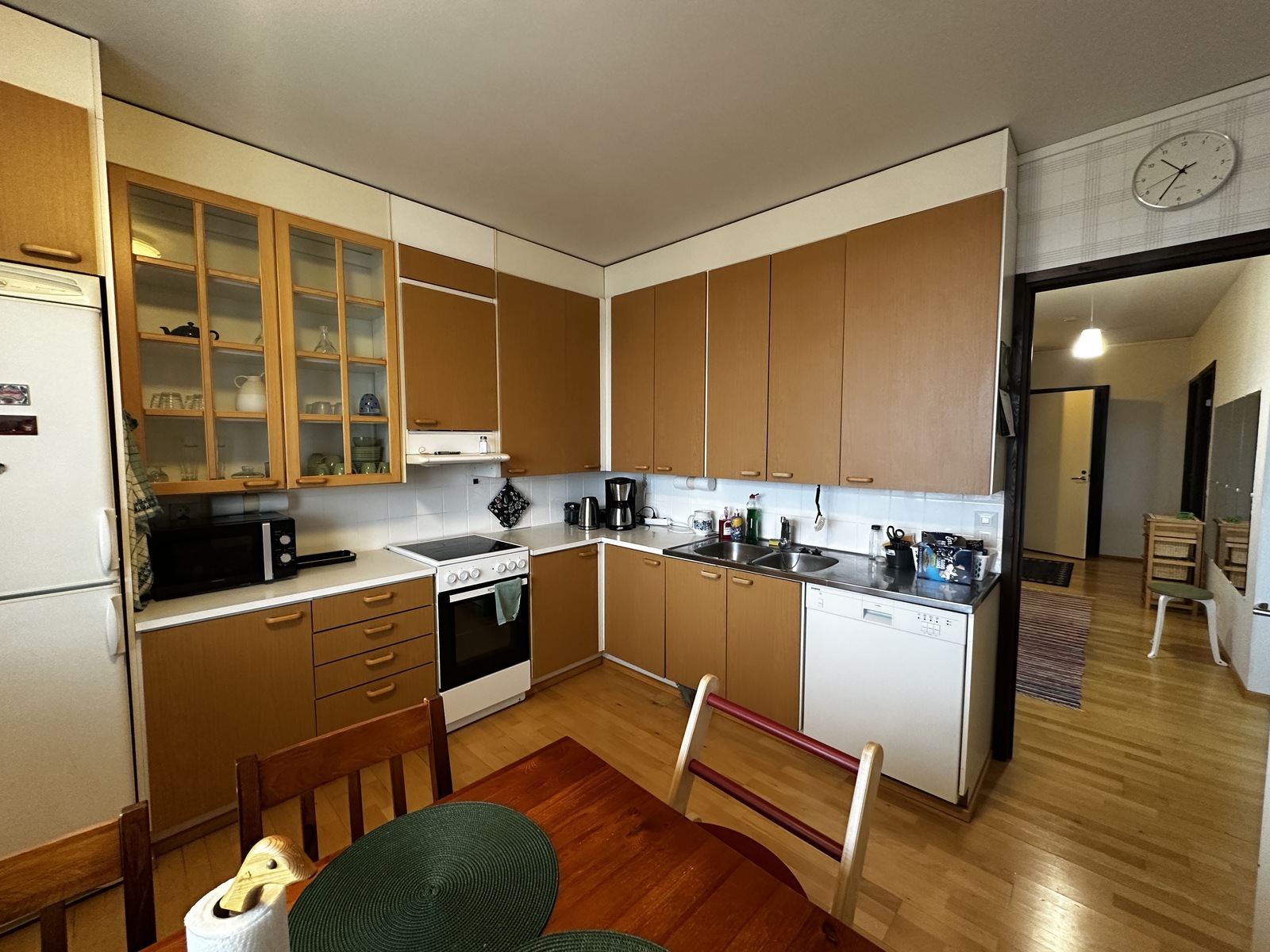 Varusteet: jääkaappipakastin, astianpesukone, liesituuletin hormilla, keraaminen liesi