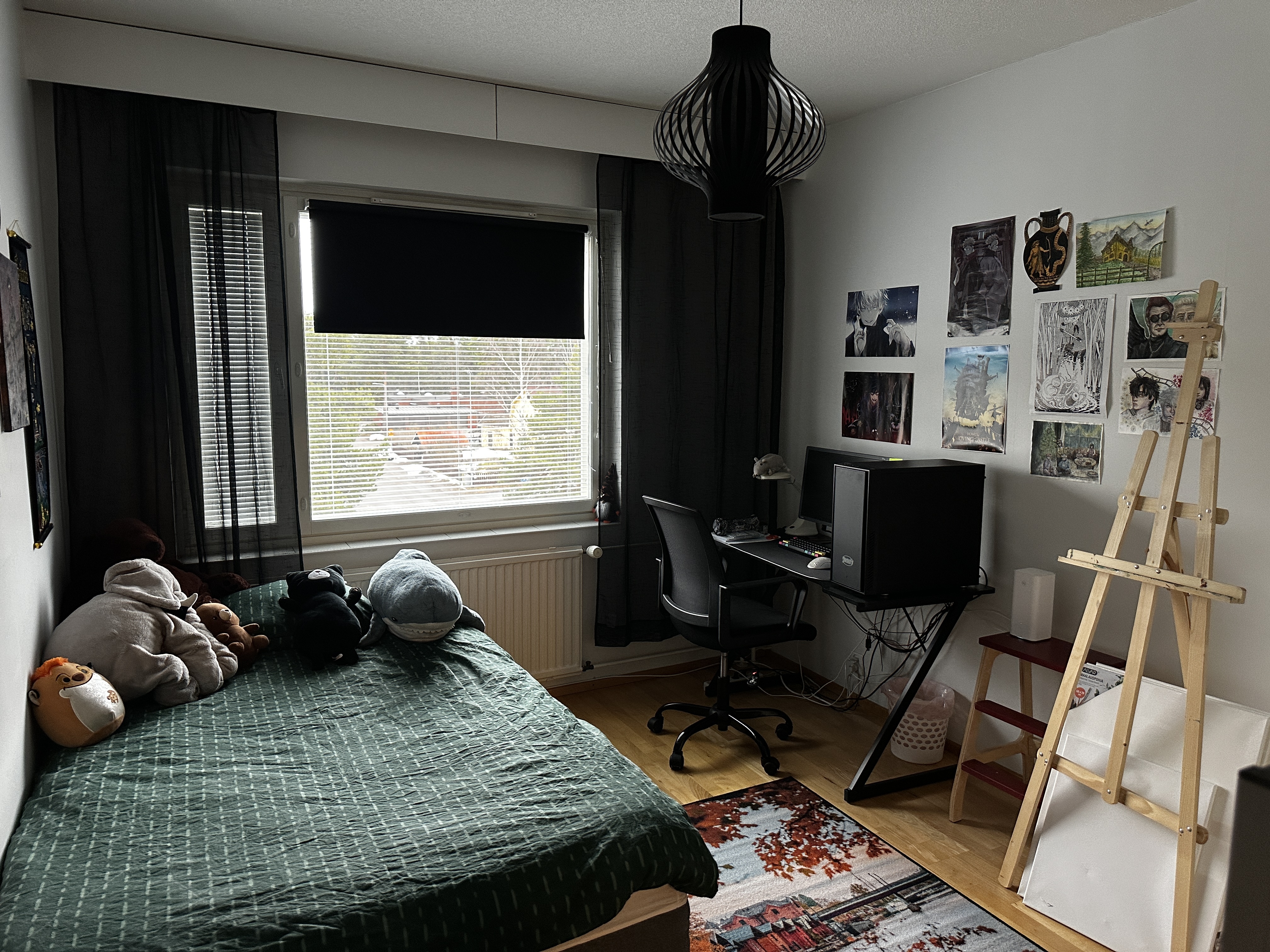 Asunto sijaitsee hissittömän talon 3. kerroksessa.
