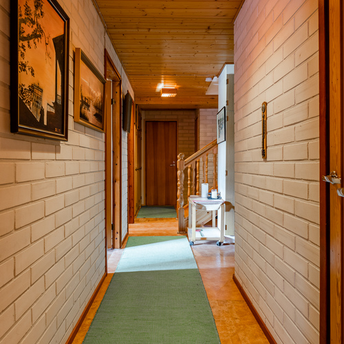Talon sisäpinnat ovat suurimmilta osin alkuperäisessä kunnossaan, mutta peruskuntoiset.