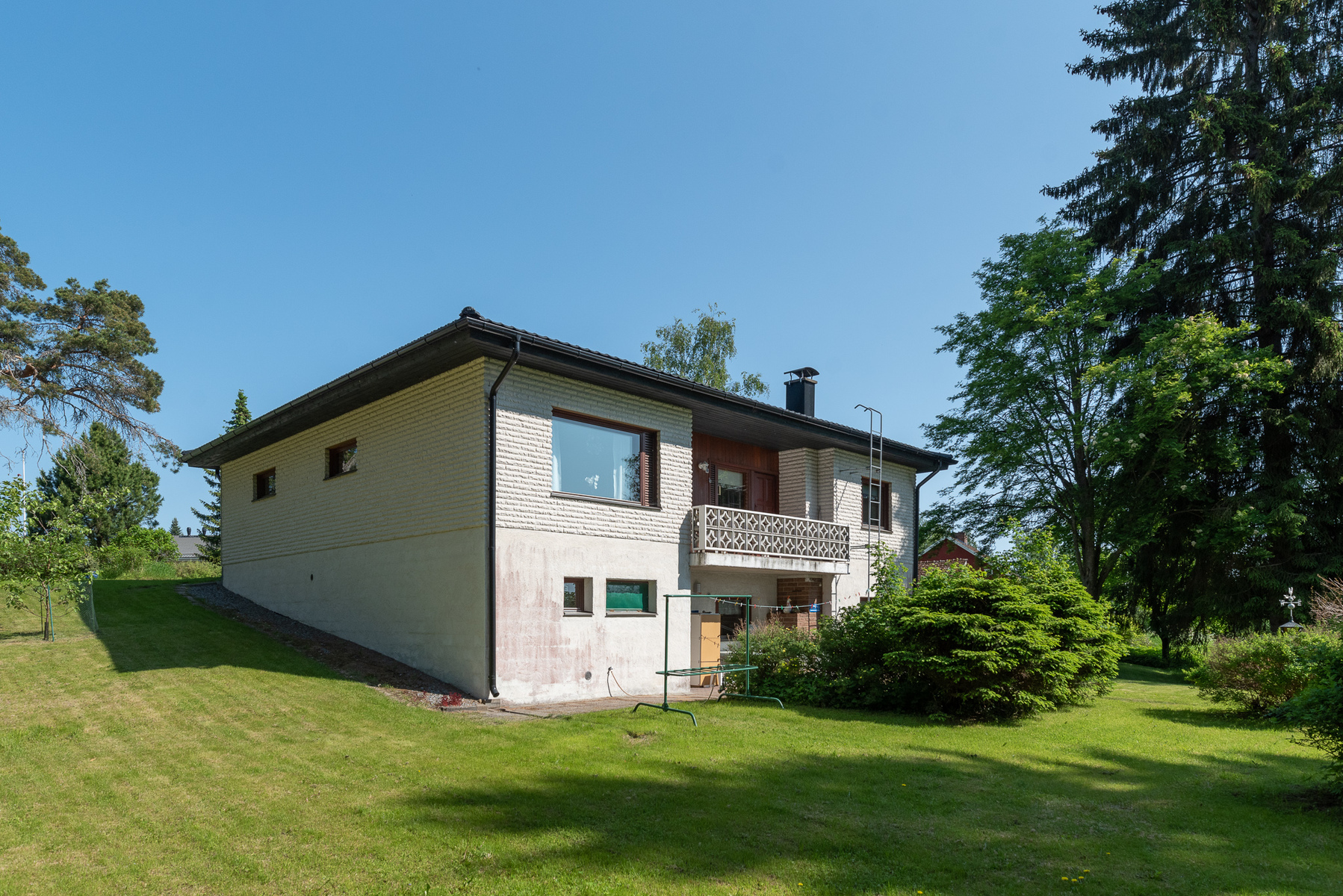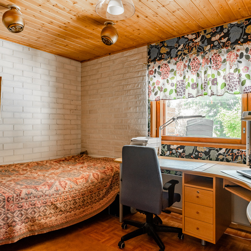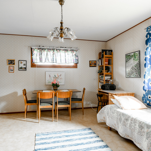 Talo on rakennettu kahteen tasoon ja talon yhteydessä on myös erillinen oma pieni yksiönsä pesutiloineen.