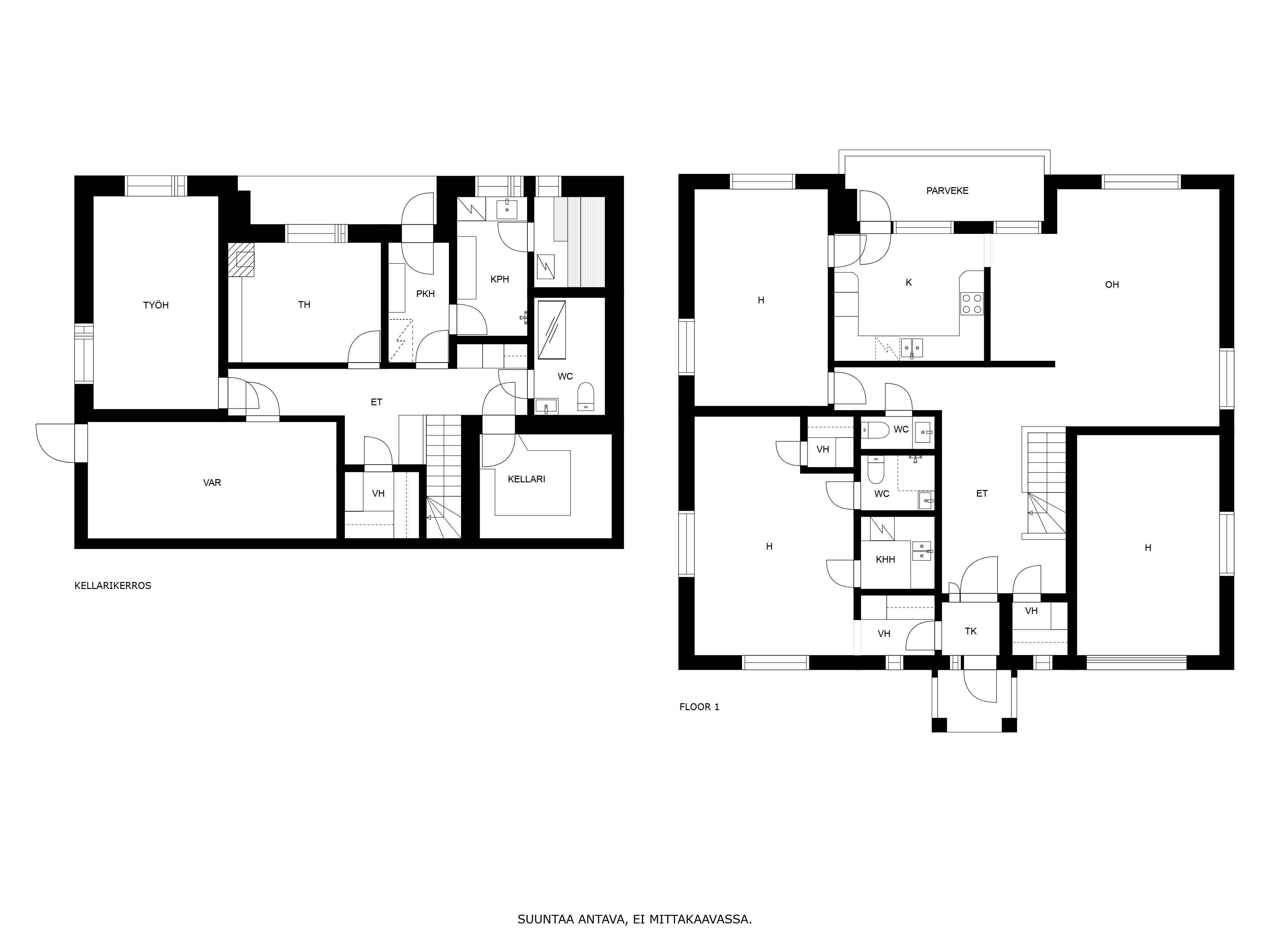 Kellarikerroksessa on lisäksi isot säilytystilat.