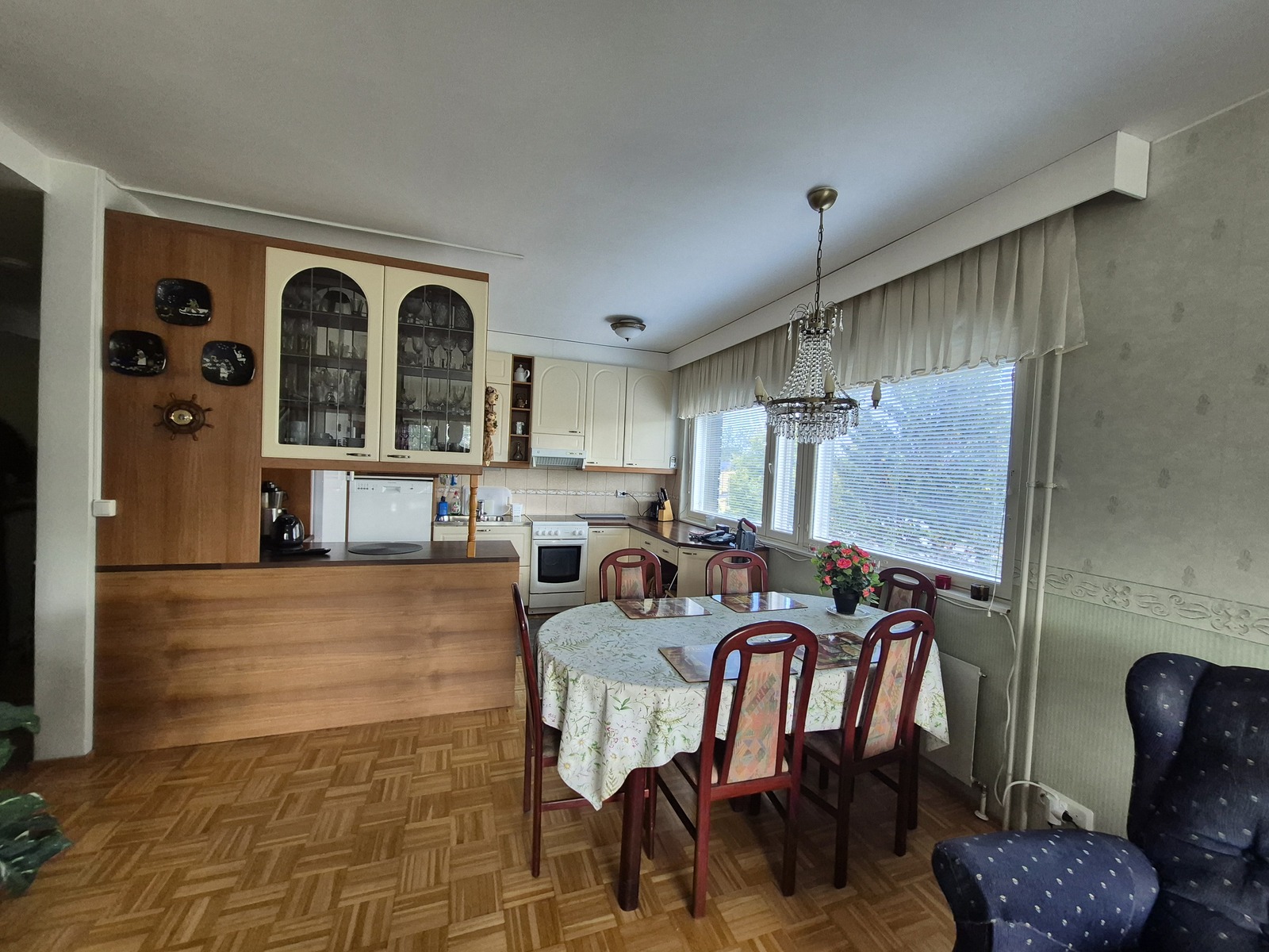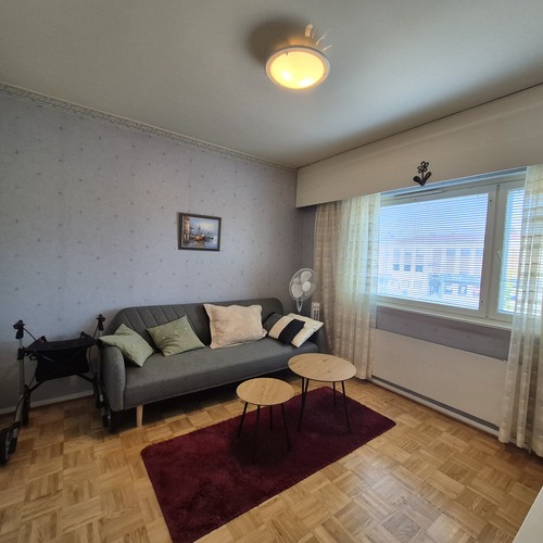 Asunnossa on parkettilattiat, kylpyhuone on laatoitettu, keittiö on peruskuntoinen ja siellä on paljon laskutilaa. Lasitetulla parvekkeella voit nauttia aurinkoisista päivistä.