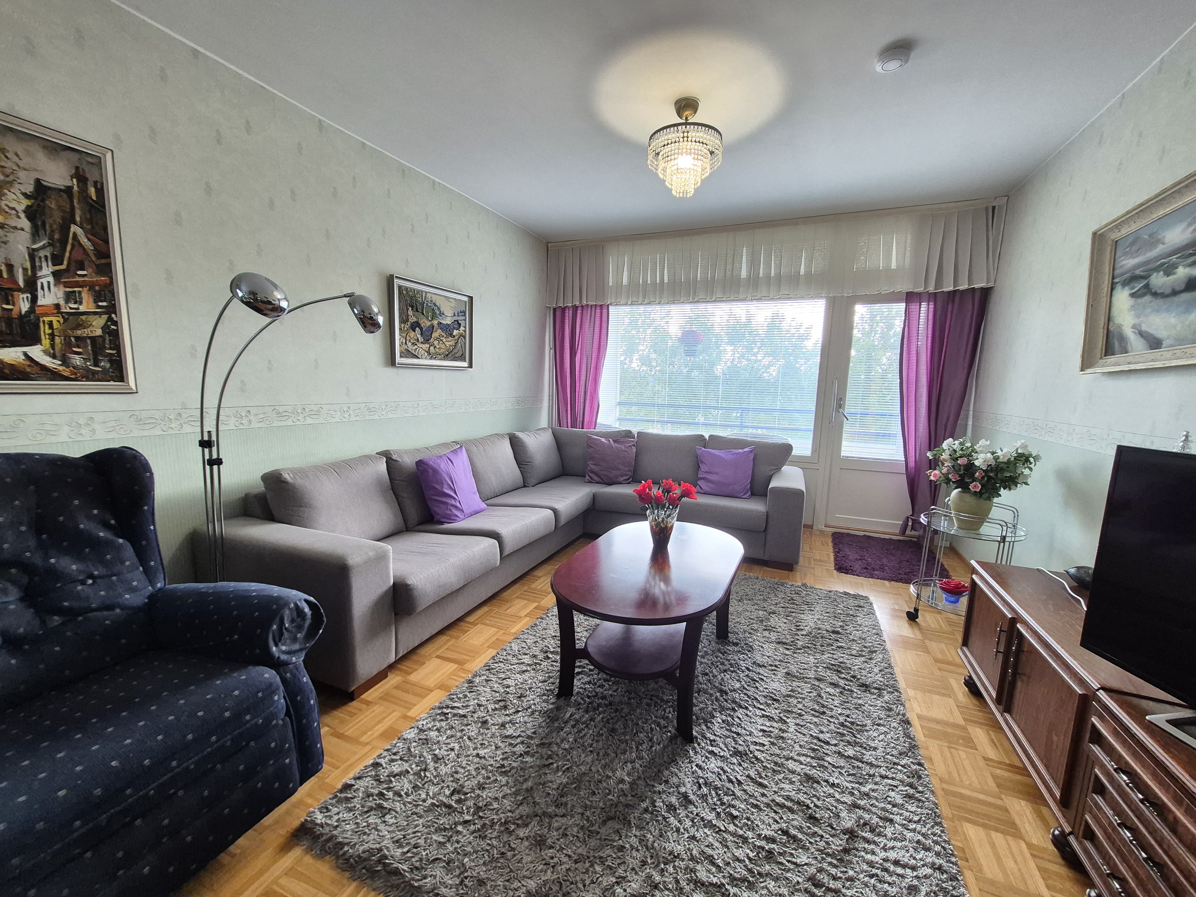 Viihtyisä kolmio Olavinlinnan kupeessa kerrostalon 2. kerroksessa.