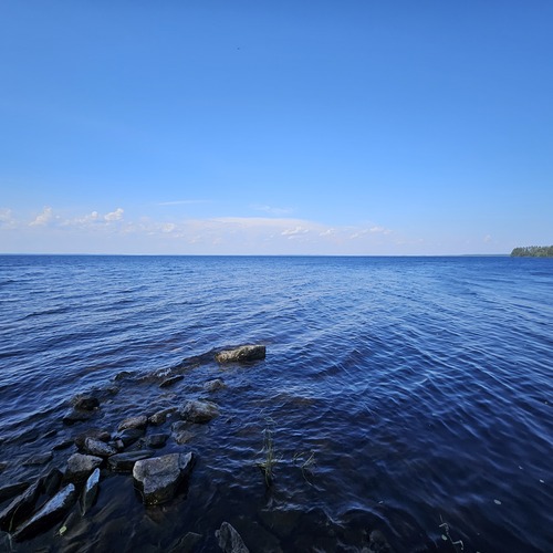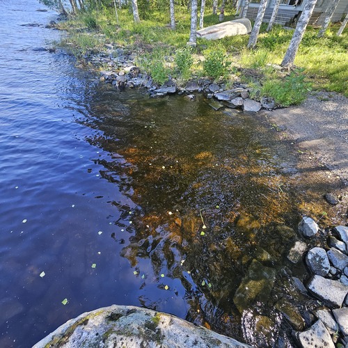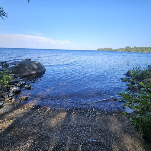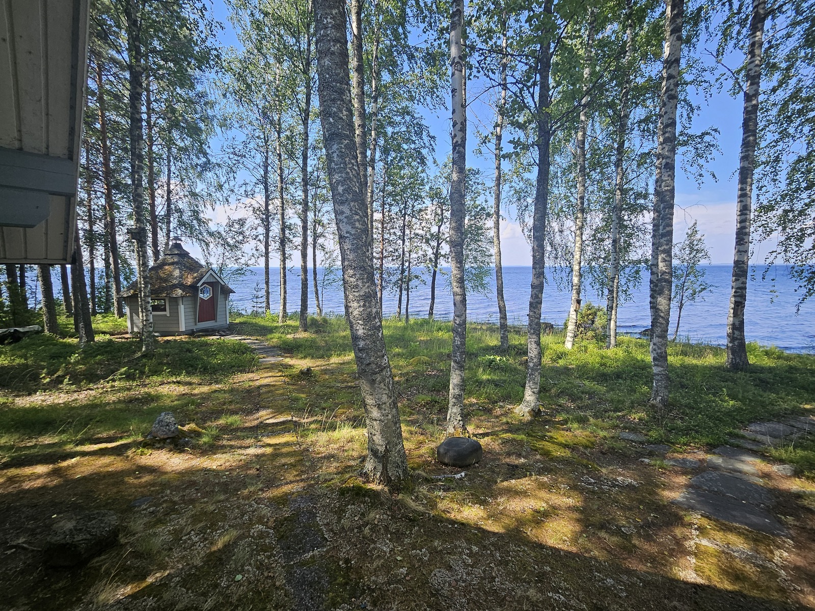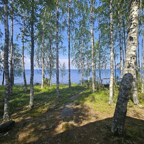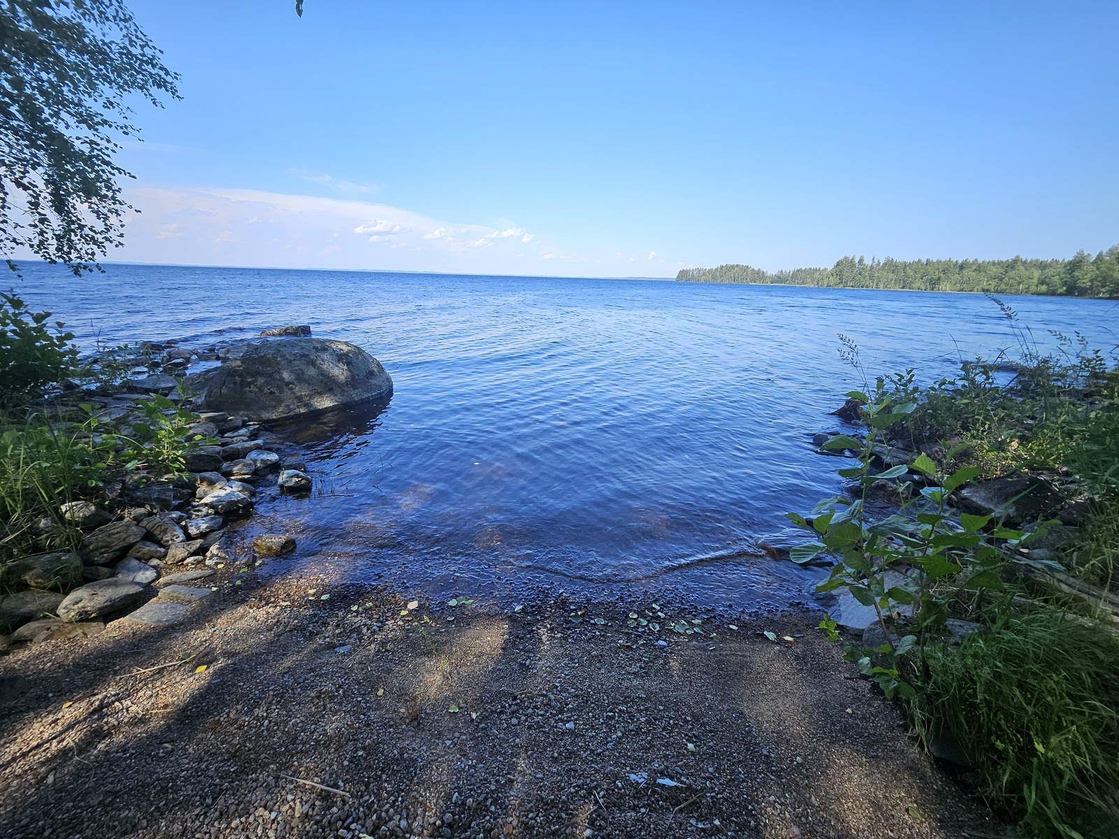 Kovapohjainen hiekkaranta. Omaa rantaviivaa n. 450 metriä.