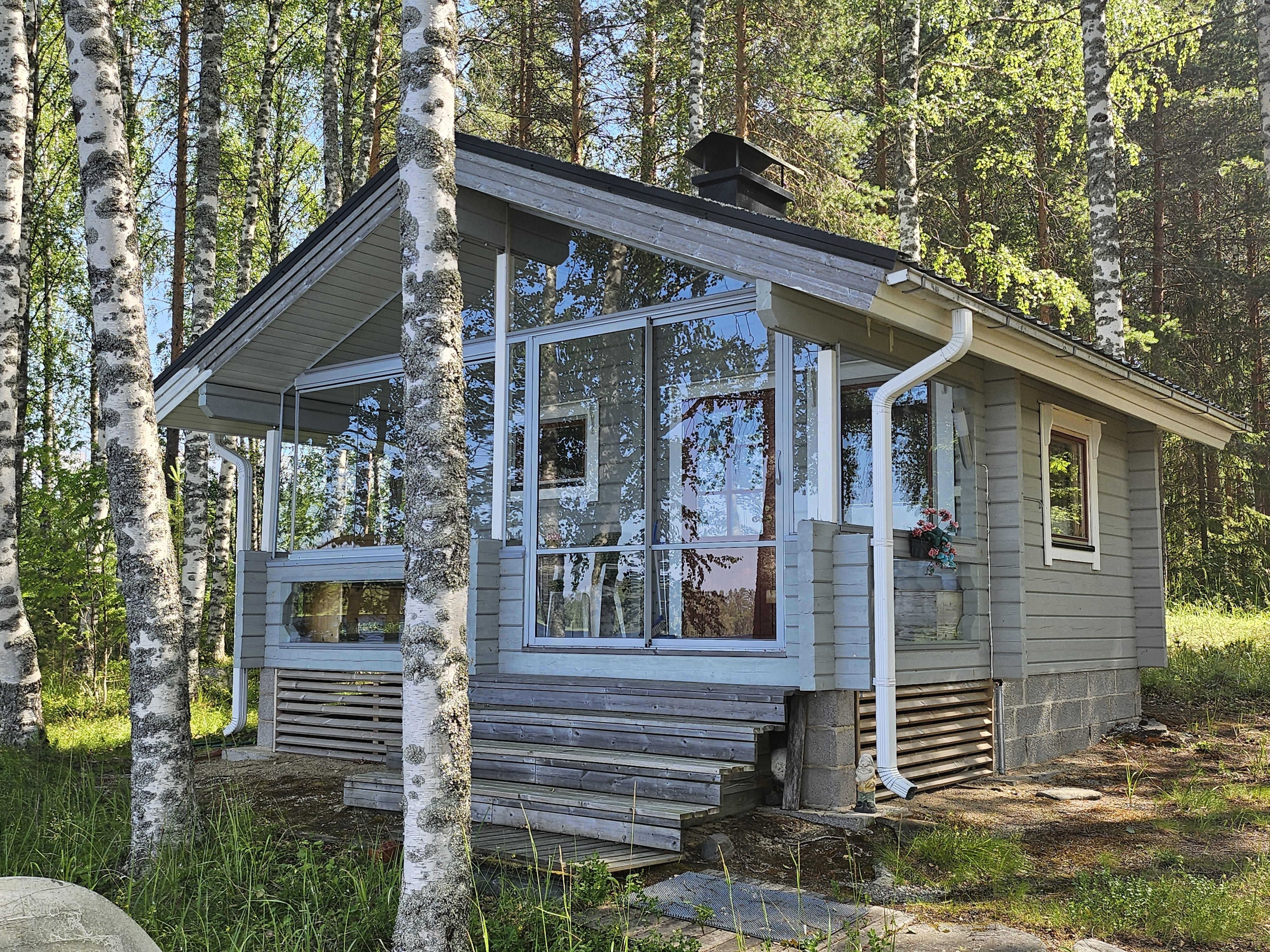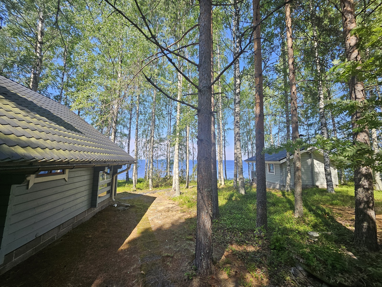 Tämä mökki sijaitsee yli kahden hehtaarin tontilla Saimaan Paasveden rannalla, tarjoten etelään ja länteen avautuvat upeat maisemat sekä omaa rantaviivaa reilut 400 metriä.