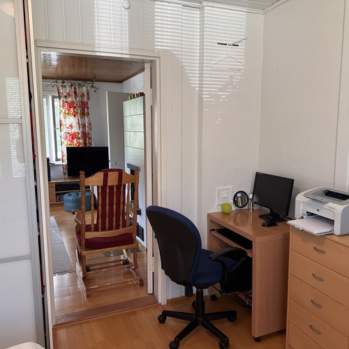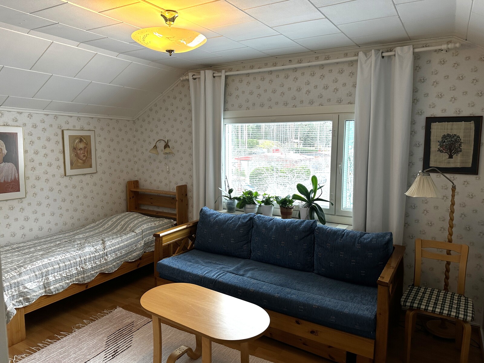 1. asuinkerroksessa on olohuone, keittiö, makuuhuone ja pesuhuone/wc.
