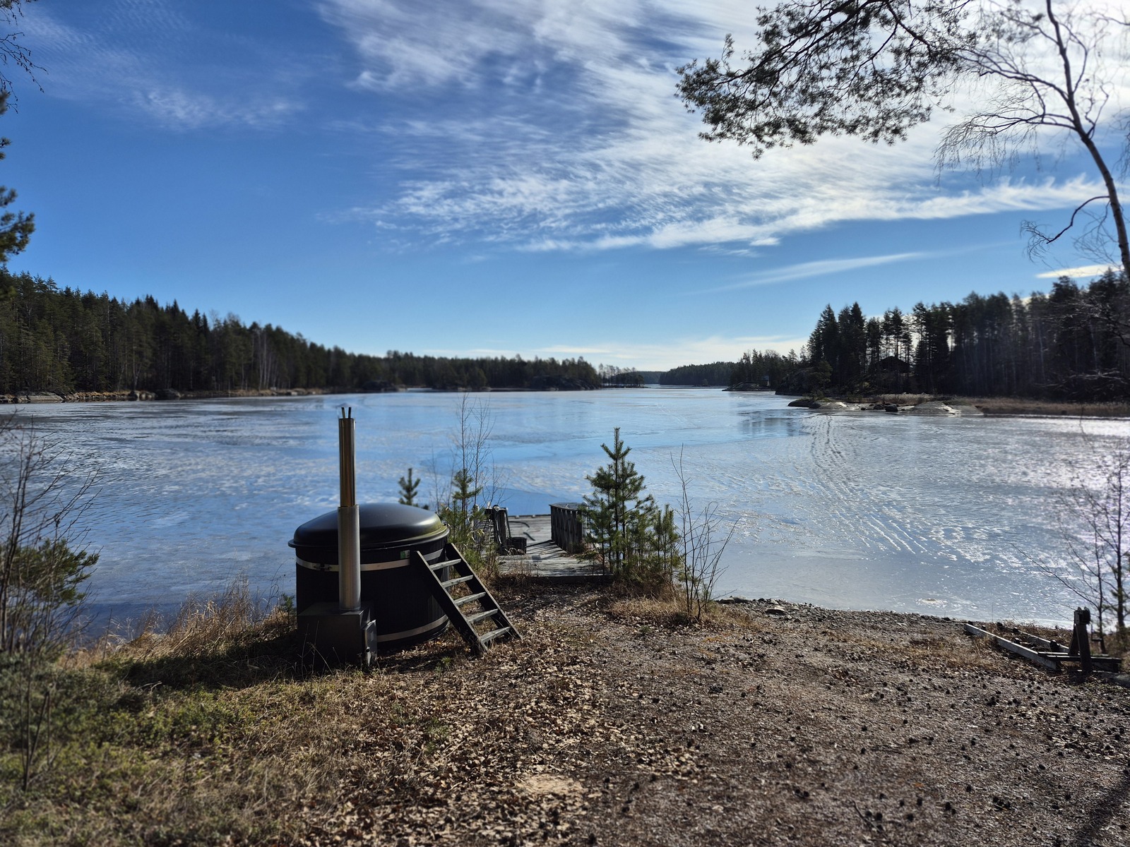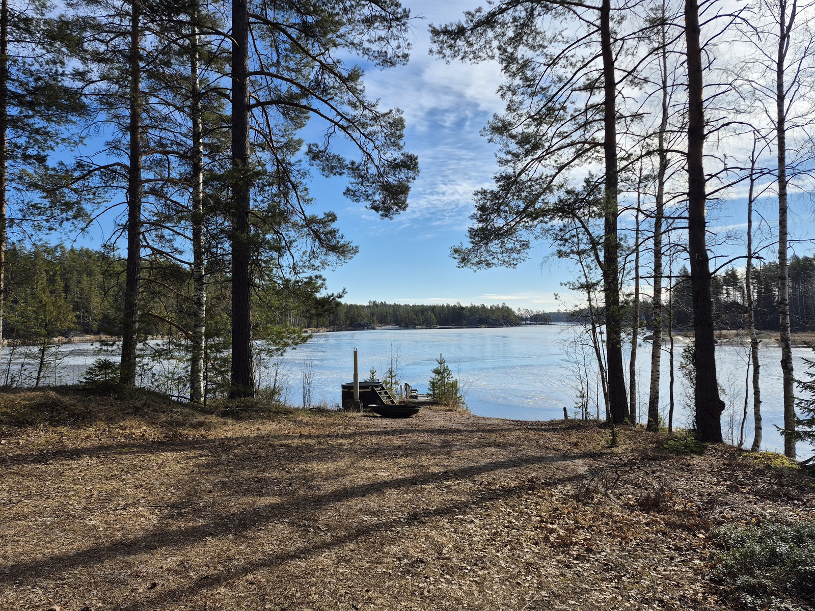 Kiinteistöllä on sähköliittymä ja vesi tulee saunaan pumpulla järvestä.