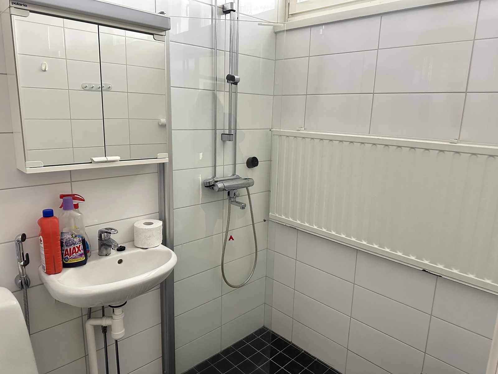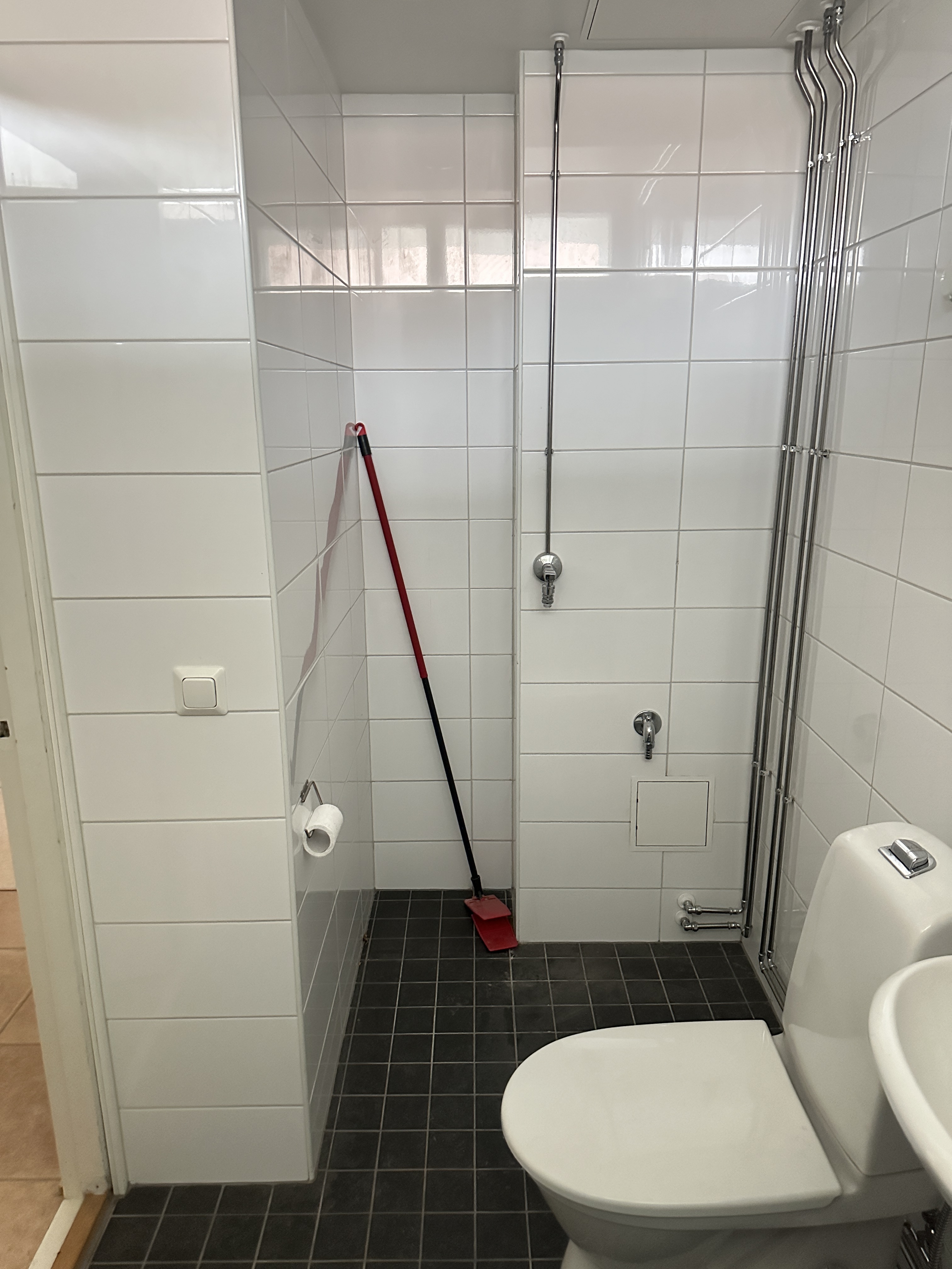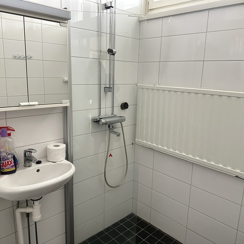 Varusteet: suihku, pesukoneliitäntä, peilikaappi