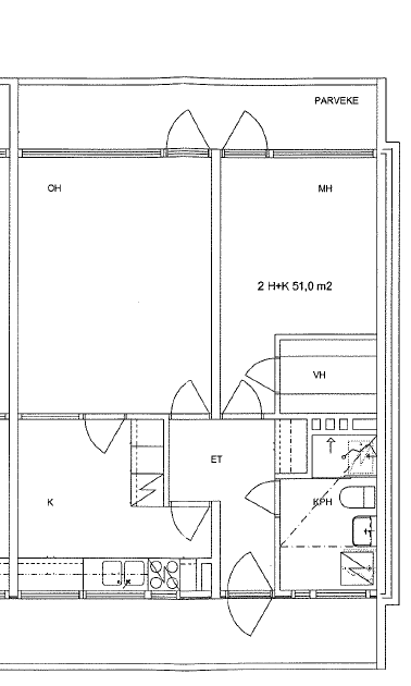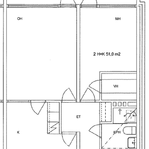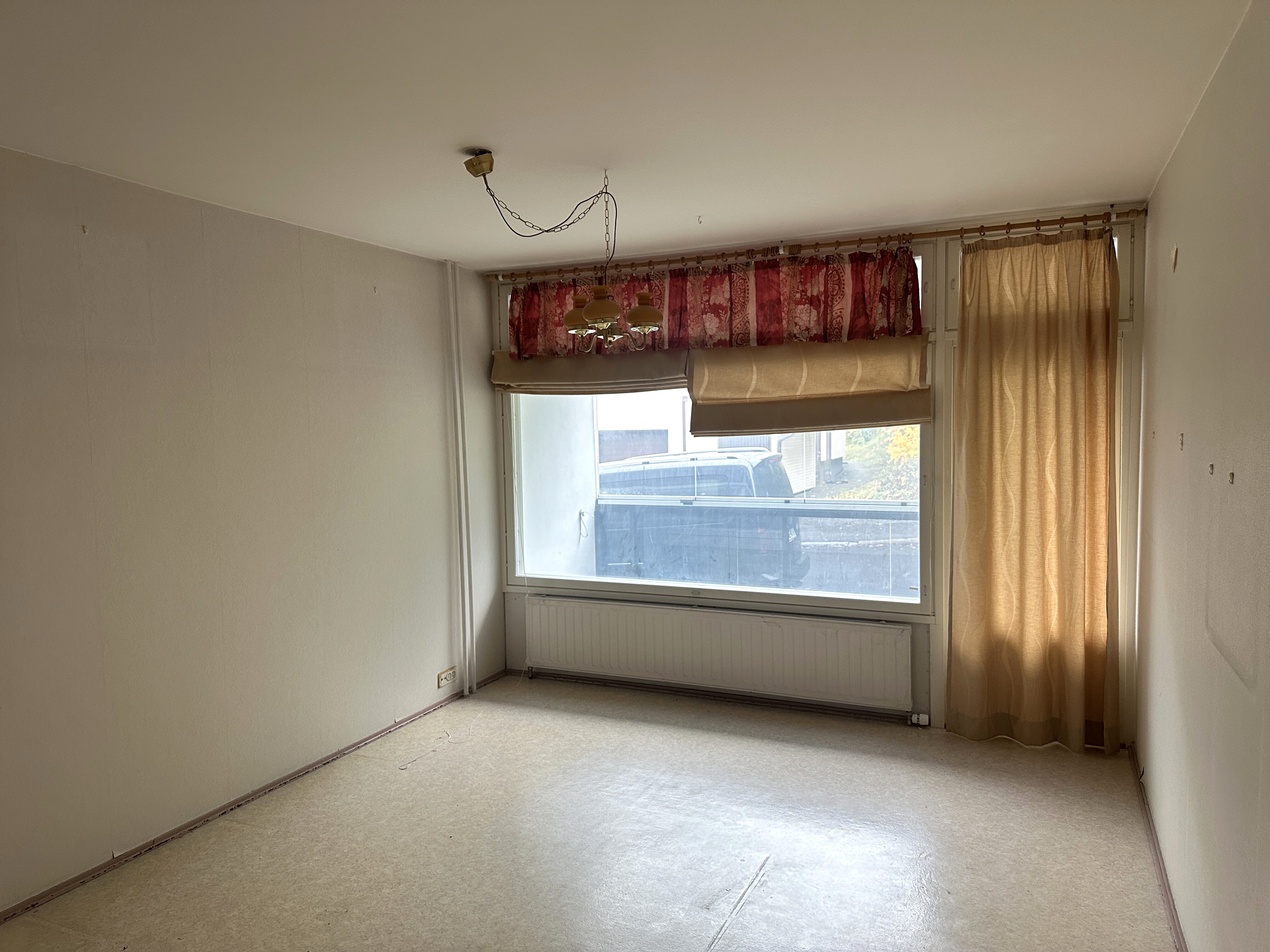 Asunto käsittää olohuoneen, makuuhuoneen, keittiön ja kylpyhuoneen. Keittiöön mahtuu hyvin myös ruokapöytä. Koko asunnon levyiselle lasitetulle parvekkeelle on käynti olohuoneesta ja makuuhuoneesta. Asunto on kylpyhuonetta lukuun ottamatta peruskuntoinen ja vaatiikin pintojen osalta päivitystä.