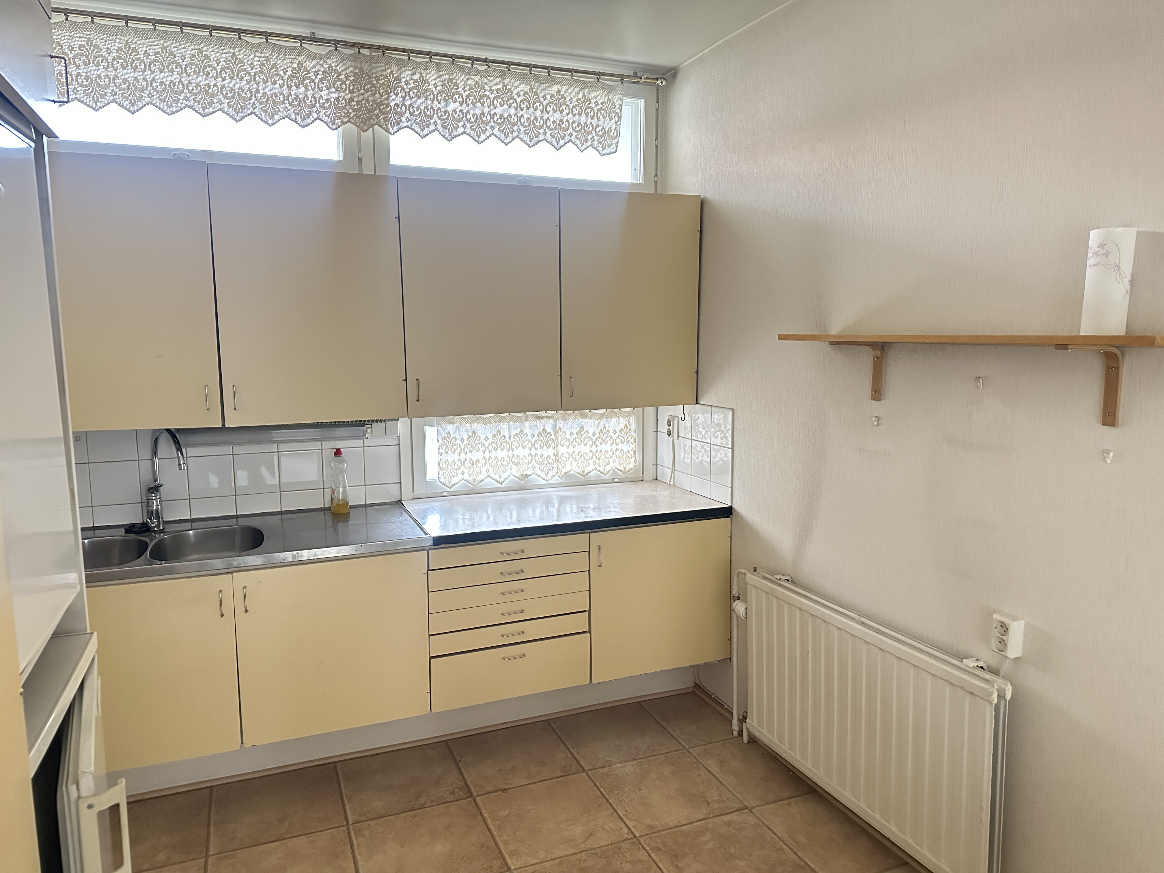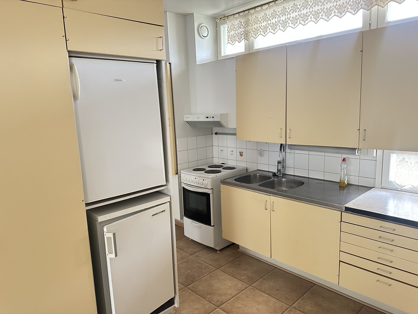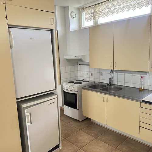 Varusteet: jääkaappi, pakastin, sähköliesi, liesituuletin hormilla
