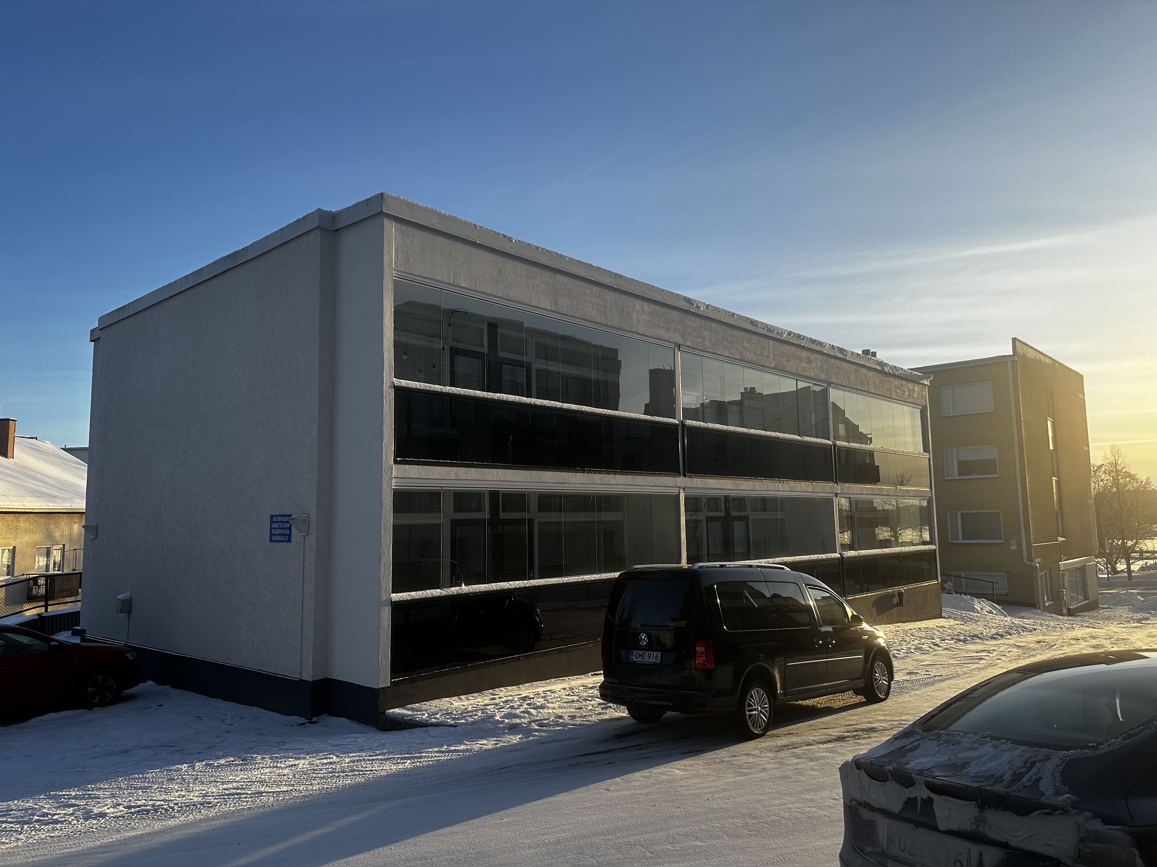 Taloyhtiön autopaikat jonotusperiaatteella.