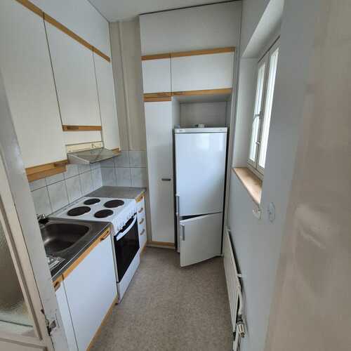 Asunto sijaitsee talon toisessa kerroksessa ja käsittää olohuoneen, keittokomeron ja pesuhuoneen. Näkymät huoneistosta sivupihan suuntaan.