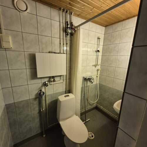 Varusteet: pesukoneliitäntä, wc-istuin, suihku