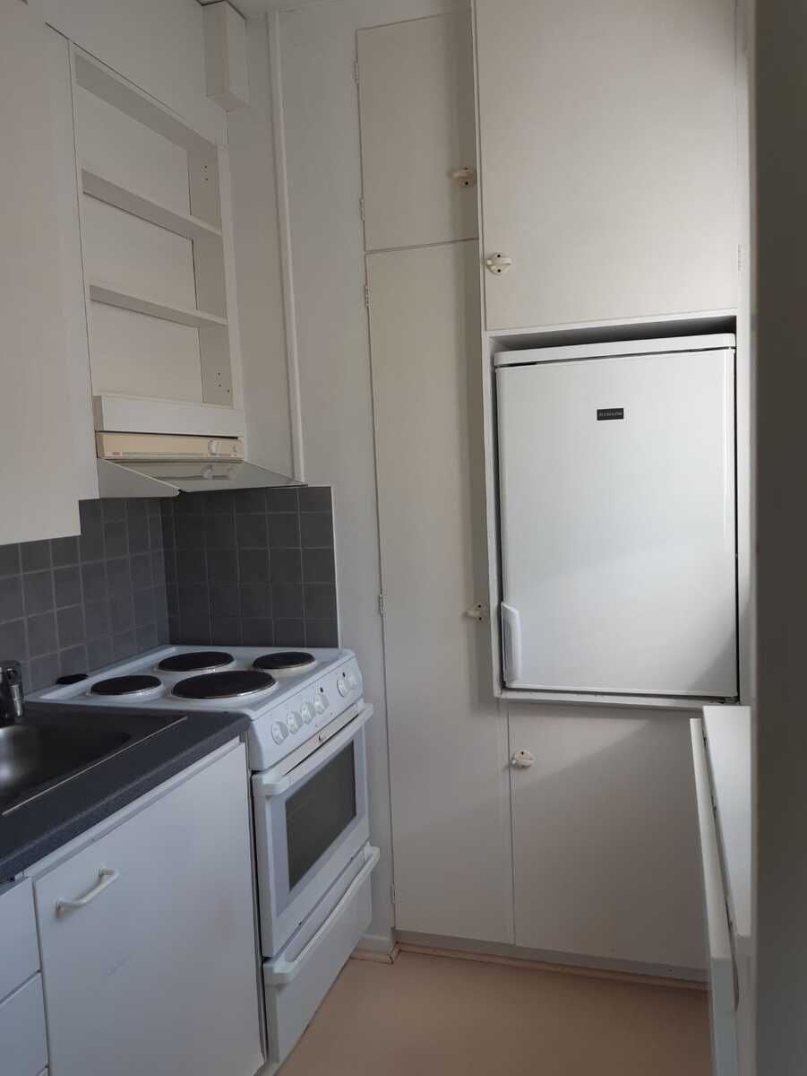 Varusteet: jääkaappi, sähköliesi, liesituuletin hormilla