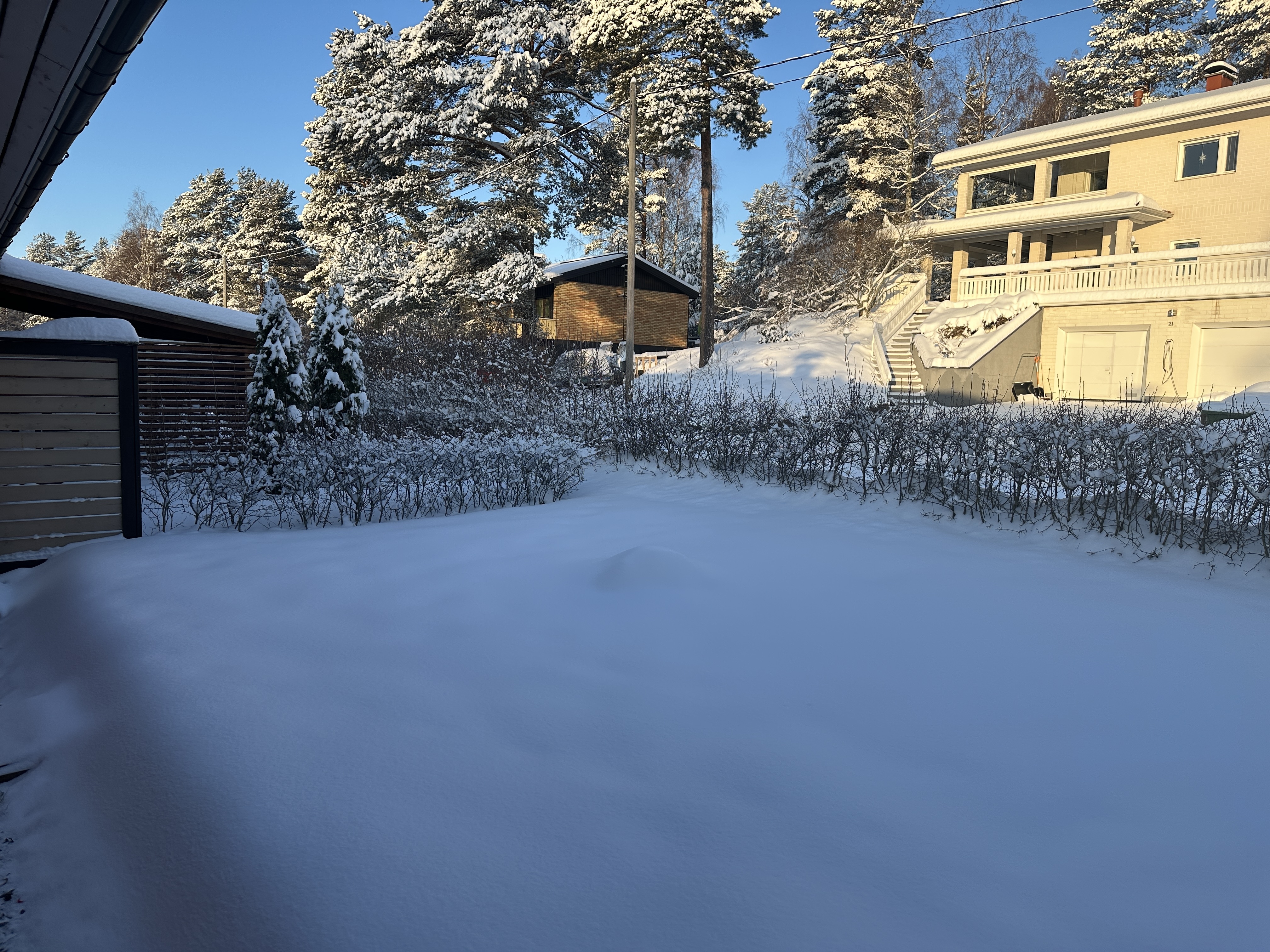 Lähellä rantaa Kellarpellossa yhteen tasoon rakennettu rivitalokolmio.