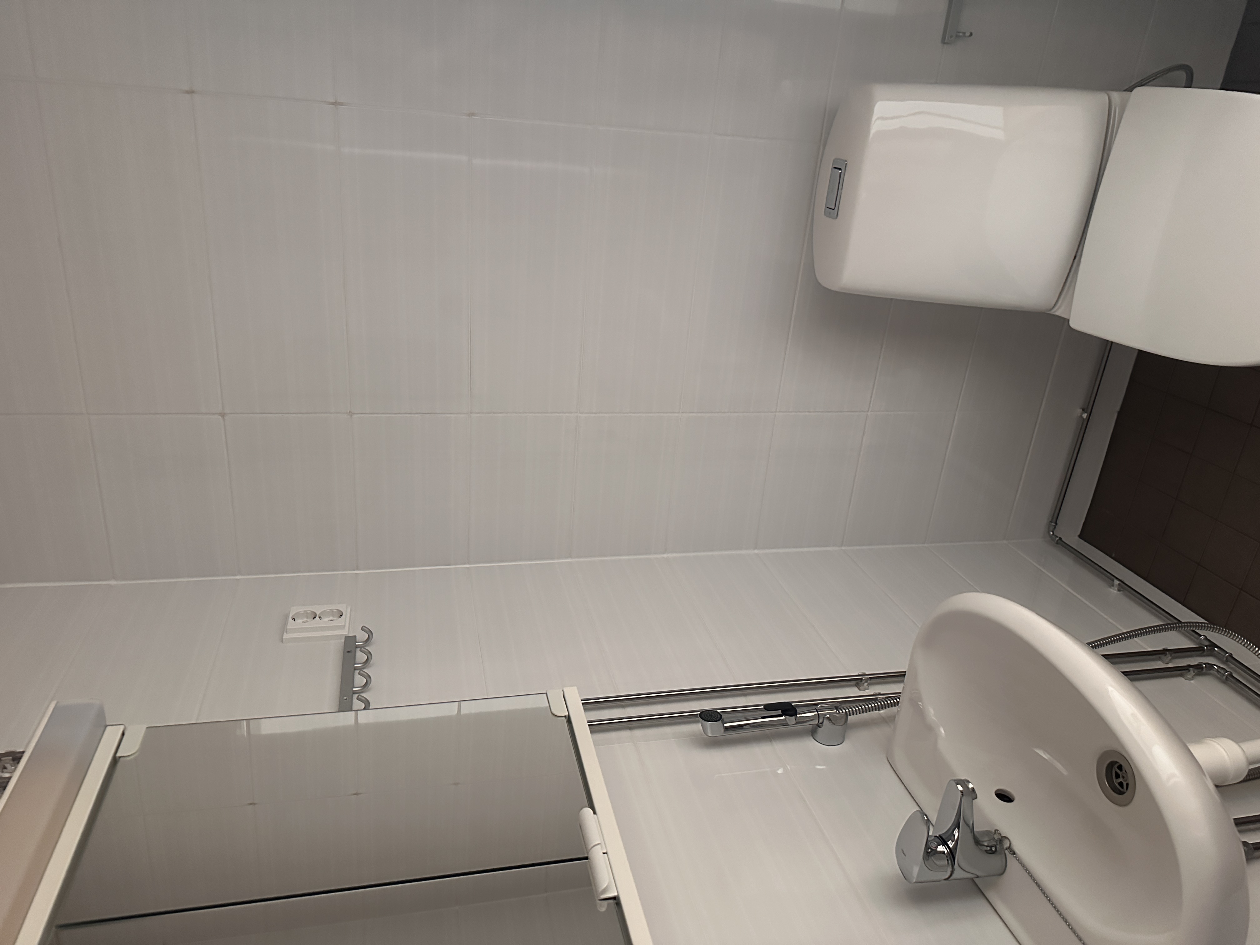 Varusteet: suihku, pesukoneliitäntä, peilikaappi