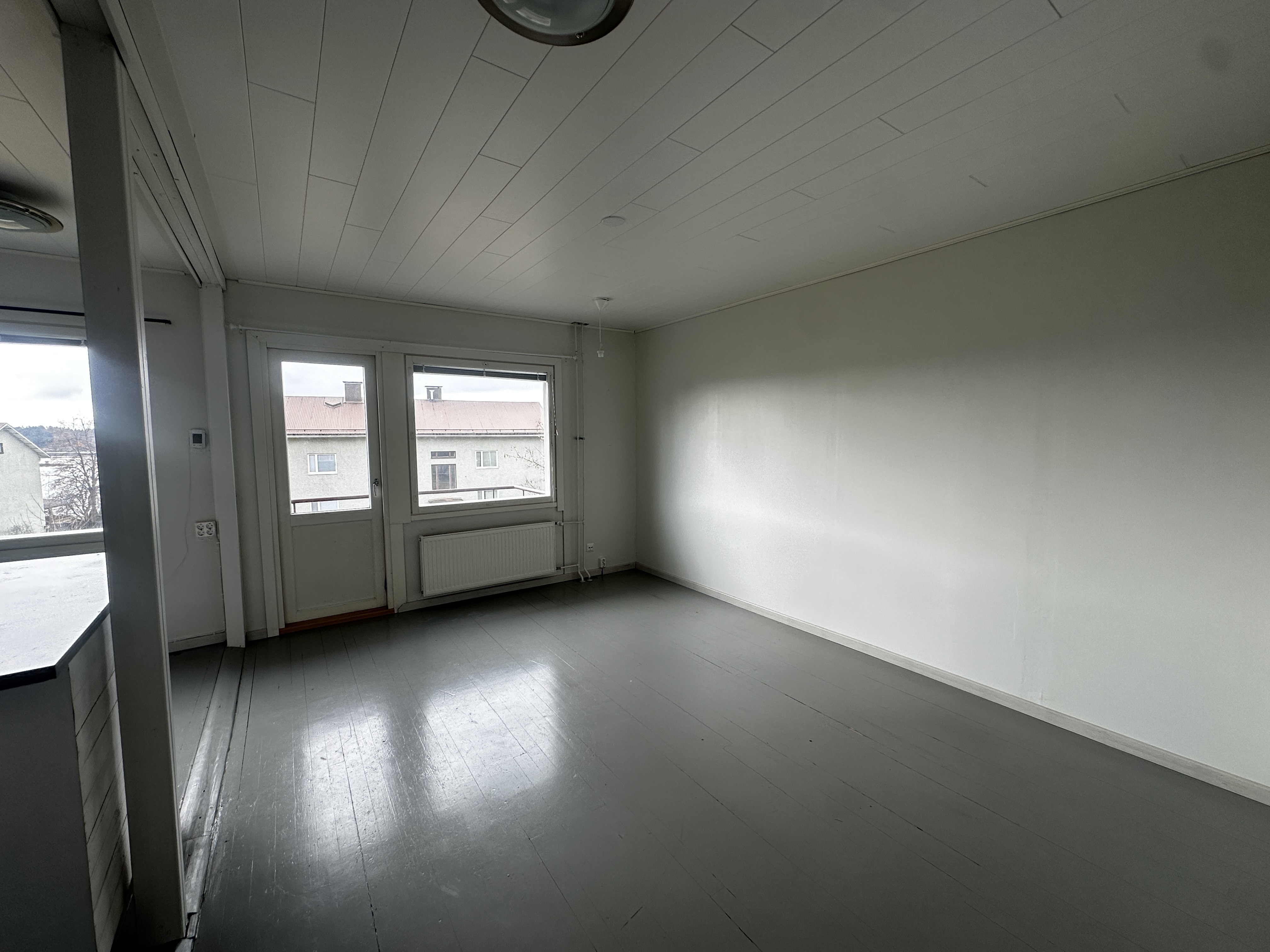 Tämä kompakti kaksio käsittää olohuoneen, makuuhuoneen, avokeittiön sekä pesuhuoneen. Lisäksi asunnolle kuuluu parveke. Asunto on pääasiassa peruskuntoinen, mutta siisti. Siellä on lautalattiat, seiniä on maalattu ja tapetoitu ja kylpyhuone on laatoitettu.