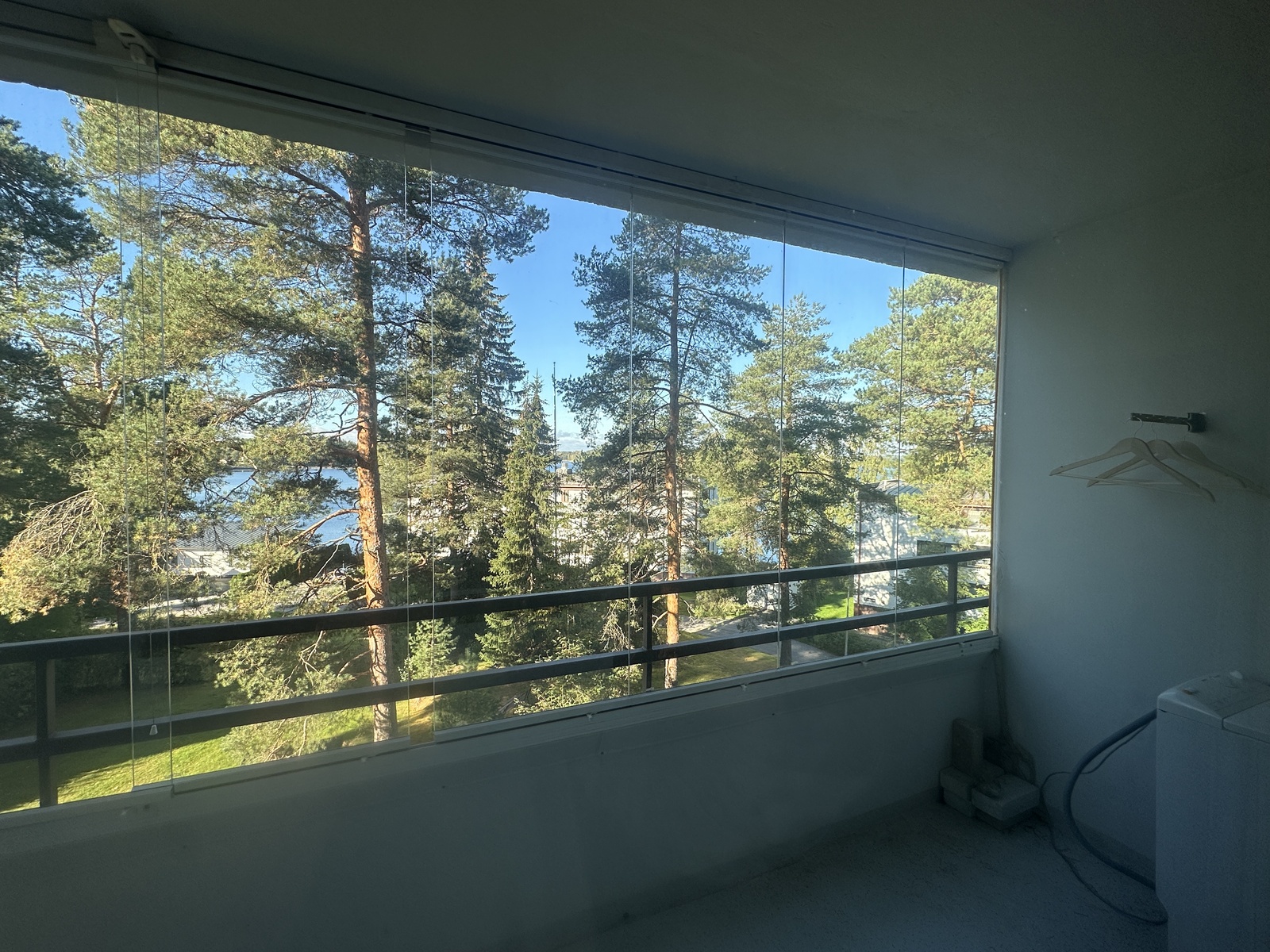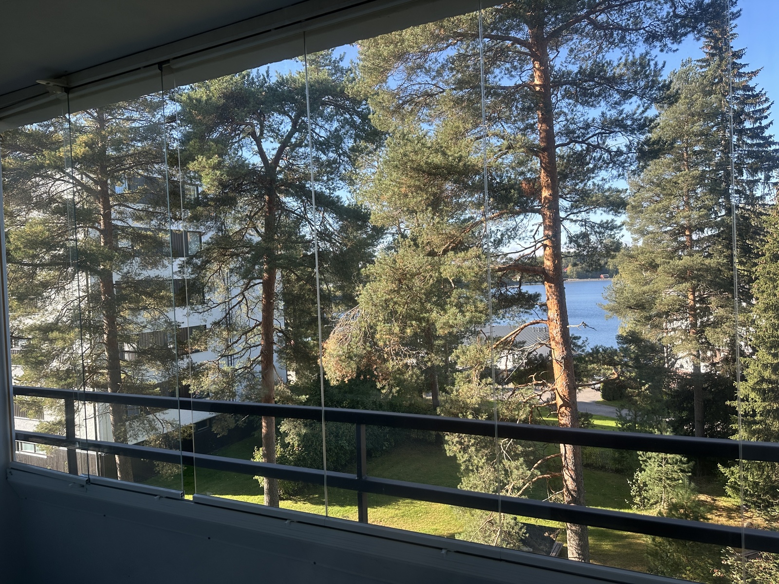 Huoneistossa lasitettu parveke, josta näkymät länteen järvelle päin. Hyvät kulkuyhteydet, linja-autopysäkki aivan talon lähellä. Taloyhtiön autopaikat jonotusperiaatteella.